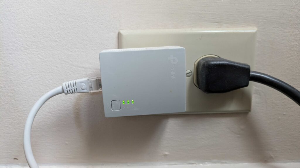 Sounds crazy, I know. But I tried it and found out it works very well. Each adapter plugs into a wall outlet and includes an ethernet port, so you can link one to your router and the other to your device for a convenient wired setup.